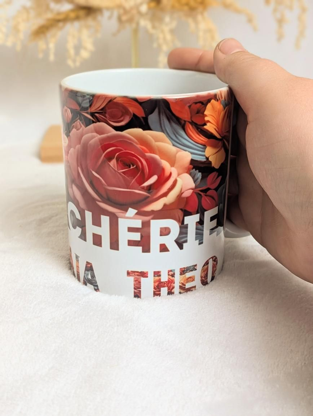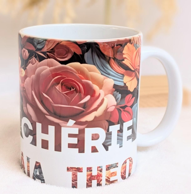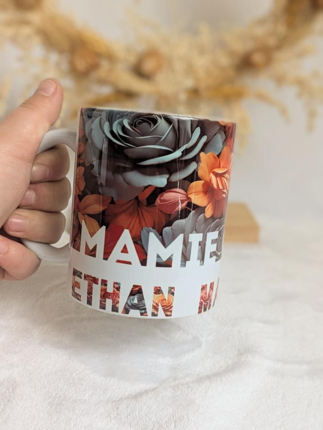 Mug fleuris personnalisé mamie cherie